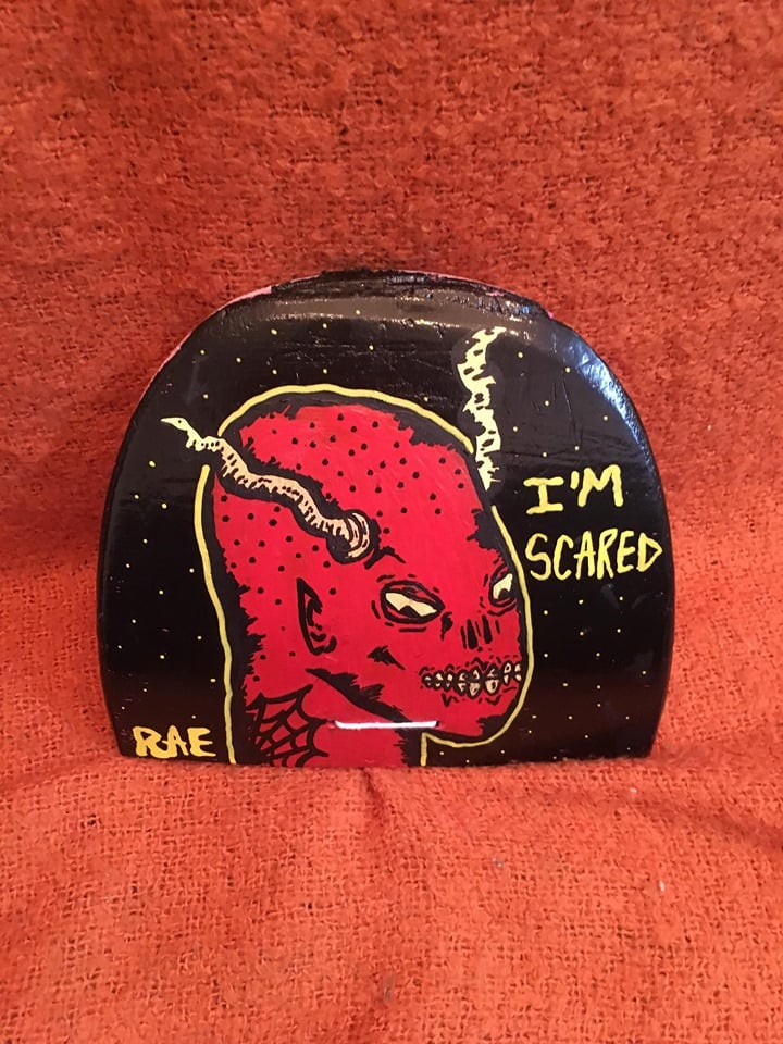 Hand Painted onto broken/upcycled deck by Rae Smith